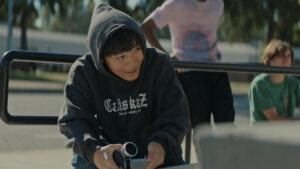 – Chris blames a lot of his struggles with identity and interpersonal relationships on a variety of people. His relationship with his older, college-bound sister Vivian (Shirley Chen) is one ostensibly predicated on mutual contempt — “if you ever pee in my lotion again, I swear I will period in your mouth.” — until she starts to realize he’s deeply lonely. One of the sweetest scenes is when she gives him a lift to see his new skateboarder friends.