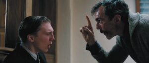 Then there’s the final sequence involving the confrontation between Daniel and Eli Sunday that is so raw and distinct due to the way it handles sound. Daniel and Eli are alone, sheltered off from any noise, both diegetic (their hectic environments) and non-diegetic (music or narration), in a bowling alley, where simple conversation prevails and harsh words are exchanged. Such words ping-pong off the wall, giving them an unsettling, almost awkward echo-quality that, once more, many American moviegoers aren’t used to. The whole film has kept us in this playground of an oilfield and many different characters, so the fact that the film chooses to conclude itself in an intimate and disturbing manner is curious, mainly because the way it handles sound is so drastically different from its previous scenes.