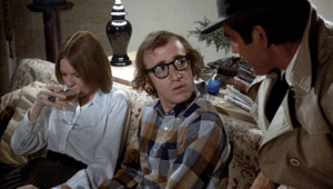 Cut to Allan’s personal life, which is as crowded as his apartment, lined with movie posters, memorabilia, and books. He has recently went through a divorce with his wife, Nancy (Susan Anspach), who told him she did not find him physically attractive nor sexually satisfying anymore, but implored him not to take offense. Naturally, Allan responds by attempting to overdose on Advil, and would probably be successful if it weren’t for the support of his friends, Dick (Tony Roberts) and Linda (Diane Keaton in her first film with Allen), a long-term married couple. The two are committed to helping their friend by arranging several blind-dates between mutual friends and acquaintances to get Allan out of funk in which he’s been since Nancy left.