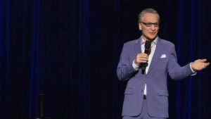 Filmed at the CIBC Theatre on Chicago’s beautiful Monroe Street, shortly after now-President Donald Trump secured reelection in 2024, Bill Maher appears wanting to take everyone’s mind off of the tornadic blend of uncertainty and “promises made” from the convicted felon. This would’ve been an ideal time for the kind of observational humor at which Maher has excelled for years. It’s part of what makes his routine “New Rules” segment on his show Real Time so endearing and blisteringly funny. Despite foremost being a political commentator, Maher has the kind of astute eye that’s views are best communicated through a comedian’s voice and proclivity for timing.