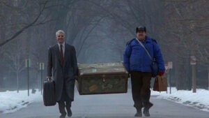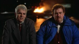 Steve Martin’s Neal Page is a salesman eager to leave New York City to get home to his family in Chicago. It should be as simple as a flight from LaGuardia to O’Hare, but bad weather diverts his flight to Wichita, Kansas. Whilst on the plane, Neal is seated next to Del Griffith (John Candy), a man whose loquaciousness offsets his good-natured charm. He’s a shower curtain ring salesman of all people, so even his screeds about what he does for a living aren’t interesting. Del was also the man who inadvertently stole Neal’s cab on the way to the airport.