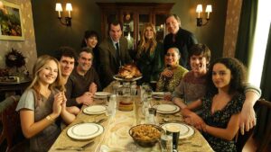 Set some-thirty years after Brothers, Family drops in on the McMullen residents over Thanksgiving. Burns’ Barry is twice-divorced and has two grown kids; his brother, Patrick (Michael McGlone) has separated from his wife; and Jack Mulcahy’s Jack has since passed away, but his widow, Molly (Connie Britton), still plays both the sister-in-law and aunt roles in the family’s life.