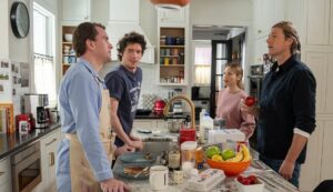 Then there’s the son, Tommy (Pico Alexander), a silver-tongued smoothie who aspires to be an actor. This is fitting because he talks like he’s scripted his monologues for the day. He’s also famously dismissive of such ideas as true love, romance, etc until he… but of course, meets a young woman named Karen (Juliana Canfield) who subsequently runs through his mind upon their first encounter like she’s Forrest Gumping. What are the odds Karen’s mother (Tracee Ellis Ross) has a history with Barry?