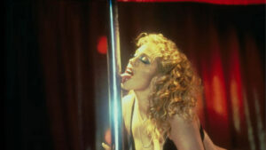 Cristal eventually recruits Nomi to be a dancer at Goddess and thus begins her navigation through the world of “high class” dancing, which the viewer, and Nomi, learns has a backstage just as seamy and deceitful as the one at Cheetah’s. She is managed and guided by Cristal, her boyfriend Zack (Kyle MacLachan), and Tony Moss (Al Rachins), the show’s cantankerous, miserable director.