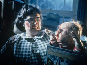Climaxes like Dead Alive inspire a rare sense of satisfaction one gets if they’ve ever played a video game and were tasked to kill an onslaught of enemies that made a courageous attempt to swarm the playable character all at once. As Lionel and Paquita fight off hordes of zombies, Jackson keeps spatial awareness in mind, always filling each cut with something interesting to look at and keeping our protagonists within arm’s length, so to speak. Moments within moments, such as Lionel struggling to find footing from the copious amount of blood spilled on the floor, or Paquita combating an accent in effort to aid Lionel in fighting off his reincarnated mother, impress sometimes just as much as bigger, overarching spectacle. Some might even have greats like George A. Romero and Tom Savini quietly mumbling to themselves, “why didn’t I think of that?”