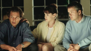 Arlington Road is aided by veteran actors in roles that merge conviction with pulp, although never in the overwrought sense. Michael’s slow descension into madness is palpable thanks to Jeff Bridges, who by the end, not only looks like he hasn’t slept in days, but acts it too. Tim Robbins only grows more unnerving because he looks his part: a suburban dad with a secret to hide. Then there’s Joan Cusack, sure to be overlooked in a role that doesn’t afford her a great deal of dialog. That virtue, however, is put to great use during an uncomfortable interaction between her and Brooke at a payphone. Her final line there will chill you because Cusack is that good — in delivery and expression — regardless of the depth of her role.