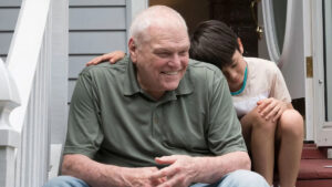 It’s inspiring when a film can make small moments feel grandiose just by observing common human behavior of empathy and inclusion. Perhaps it’s also because it feels like our world bears less and less of it by the day. The strongest example of this in Driveways could be Cody’s birthday party, which is ostensibly doom to fail from the jump seeing as he doesn’t have many friends his age and is especially lonely in this new environment. Nonetheless, his mother commits to having a party for him at a local roller rink. Despite sending some invites to the people on their block, no one shows up, until Del proves to be a late arrival. Cody remarks about how loud it is at the rink. Del has an idea. He takes Kathy and Cody to the VFW hall and elbows his way into letting the young Cody sit in on his war buddies’ bingo game. Cody even aids one of Del’s friends (Jerry Adler, The Sopranos) who has early onset dementia in helping him seek out the right numbers. Later he tells his Manga-loving neighborhood friends about his birthday at the VFW. “Everyone was drinking beer!,” he innocently exclaims.