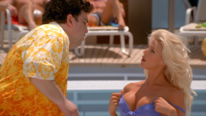 Upon arrival to this cruise, Jerry and Nick are the densest people out there if they can’t tell this is a gay cruise. You’d think with all the men, some in assless-chaps and some dressed for role playing, they’d find something is up right before boarding. Also, there is a big banner stating this is a gay cruise. Not to mention, when they get on board it takes them a good five minutes before they realize it’s not what they think it is. They keep trying to make lame excuses why they see men walking around in black leather and chains (another HUGE stereotype) almost like deep-down they know it is a gay cruise, but can’t admit to the audience.